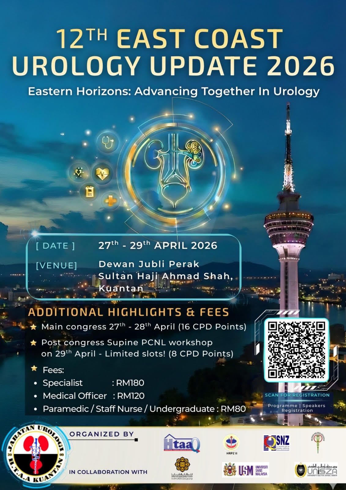 Proudly organised by Urology Department of HTAA Kuantan, HRPZ II Kota Bharu & HSNZ Kuala Terengganu. In collaboration with Urology Unit UIAM, USM and UniSZA.