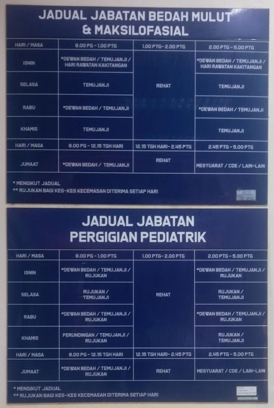Memberi perkhidmatan pergigian yang berkualiti tinggi yang seiring dengan bukti saintifik, standard dan teknologi terkini dan dilaksanakan berlandaskan ciri-ciri Budaya Korporat Kementerian Kesihatan Malaysia.