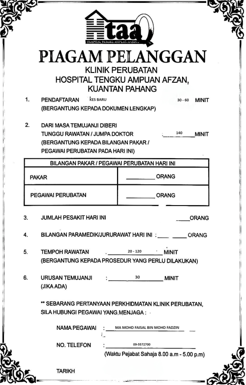 Melaksanakan perkhidmatan dengan berlandaskan cirri-ciri budaya korporat kementerian kesihatan malaysia iaitu profesionalisma, khidmat penyayang dan kerja berpasukan
